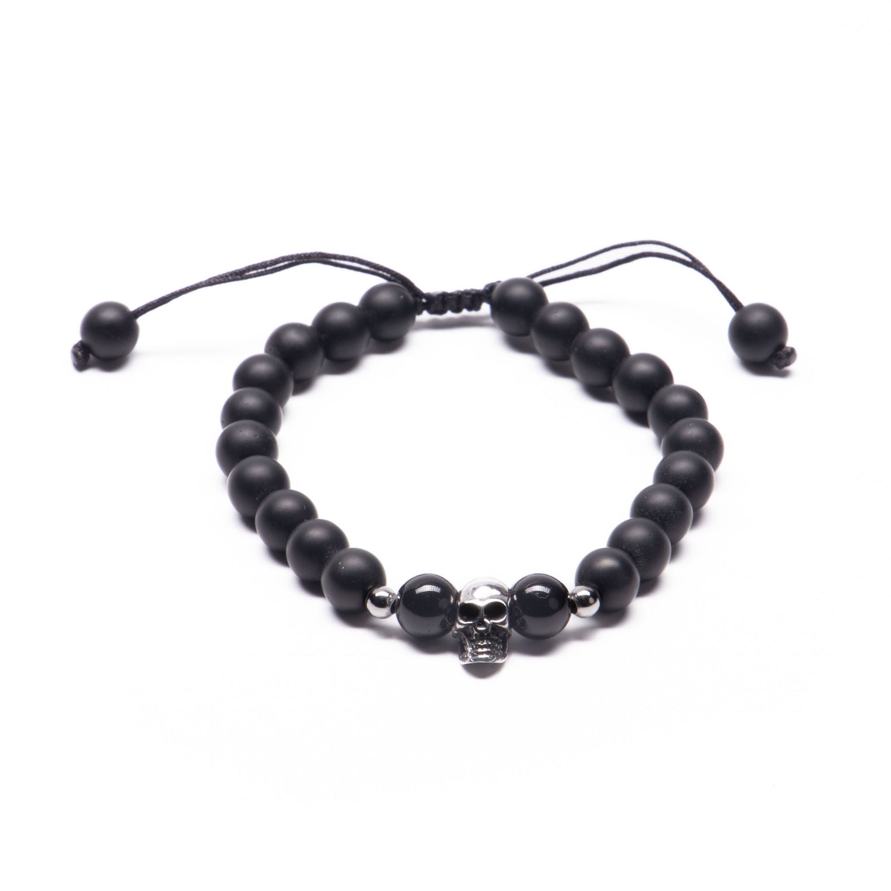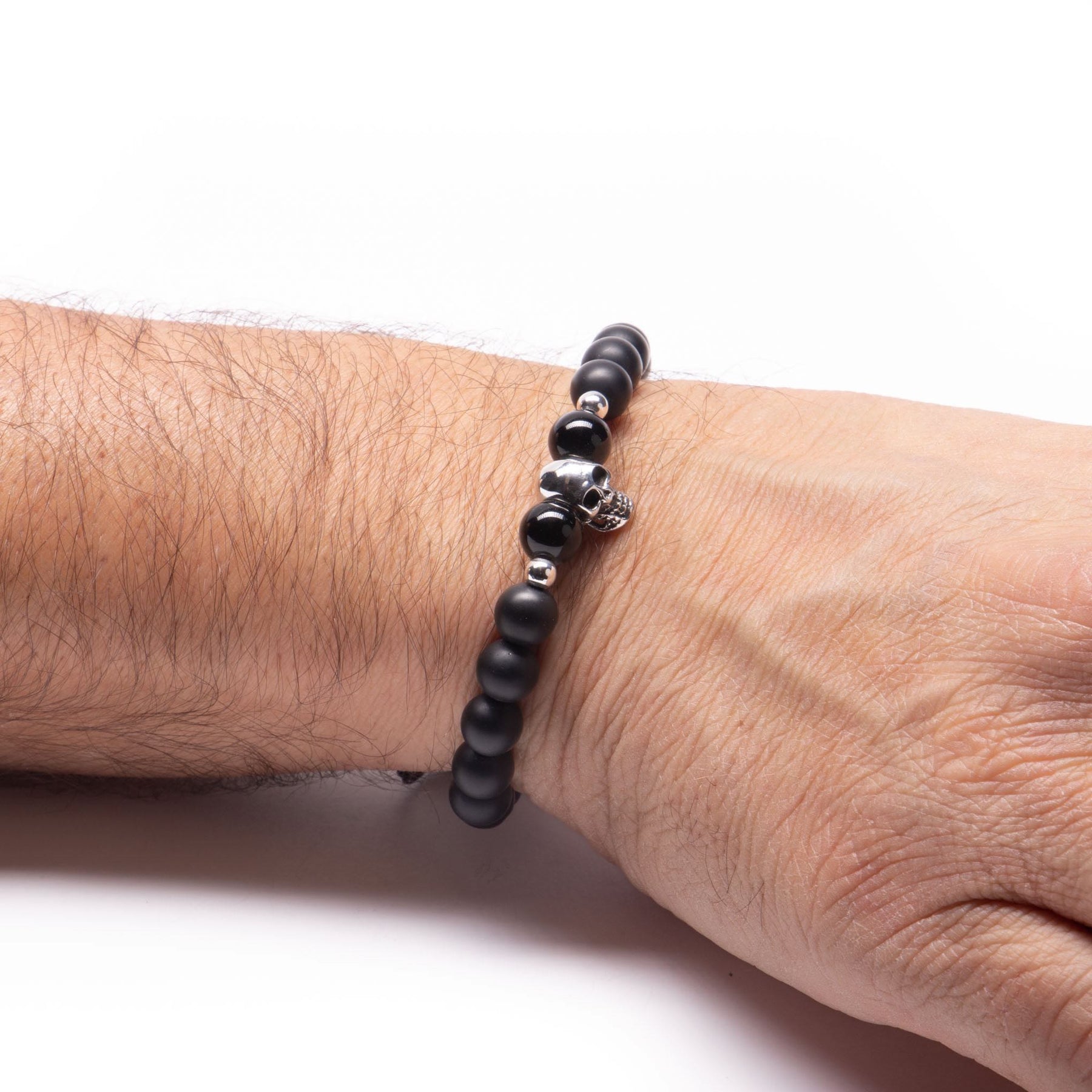 Esta pulsera de onix mate es una obra de arte para tu muñeca. Con su elegante combinación de bolas de piedra suave y una calavera audaz, es una pieza fuerte y atrevida. La textura suave y cómoda de las bolas de onix se adapta perfectamente a tu muñeca, proporcionándote una sensación de comodidad durante todo el día. La calavera es un toque de sofisticación, añadiendo un poco de actitud a cualquier look. Ya sea para un evento casual o para una noche de fiesta, esta pulsera de onix mate con calavera es un complemento versátil y lleno de personalidad. ¡Destaca con estilo y elegancia con esta pulsera de onix mate y calavera!